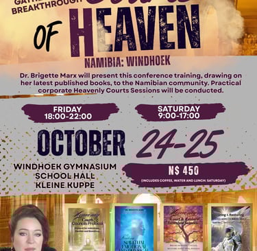 During this immersive experience, Dr. Brigette will teach personally from the complete Heavenly Courts series, unveiling the mysteries of divine justice, authority, and legislation from Heaven’s perspective. Participants will be equipped to operate as mature sons and daughters who understand their legal rights, dominion, and kingdom mandate on earth.